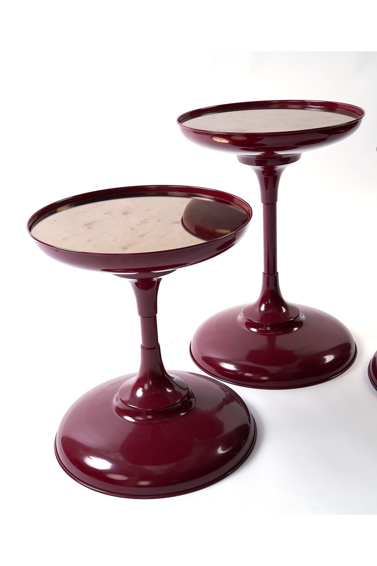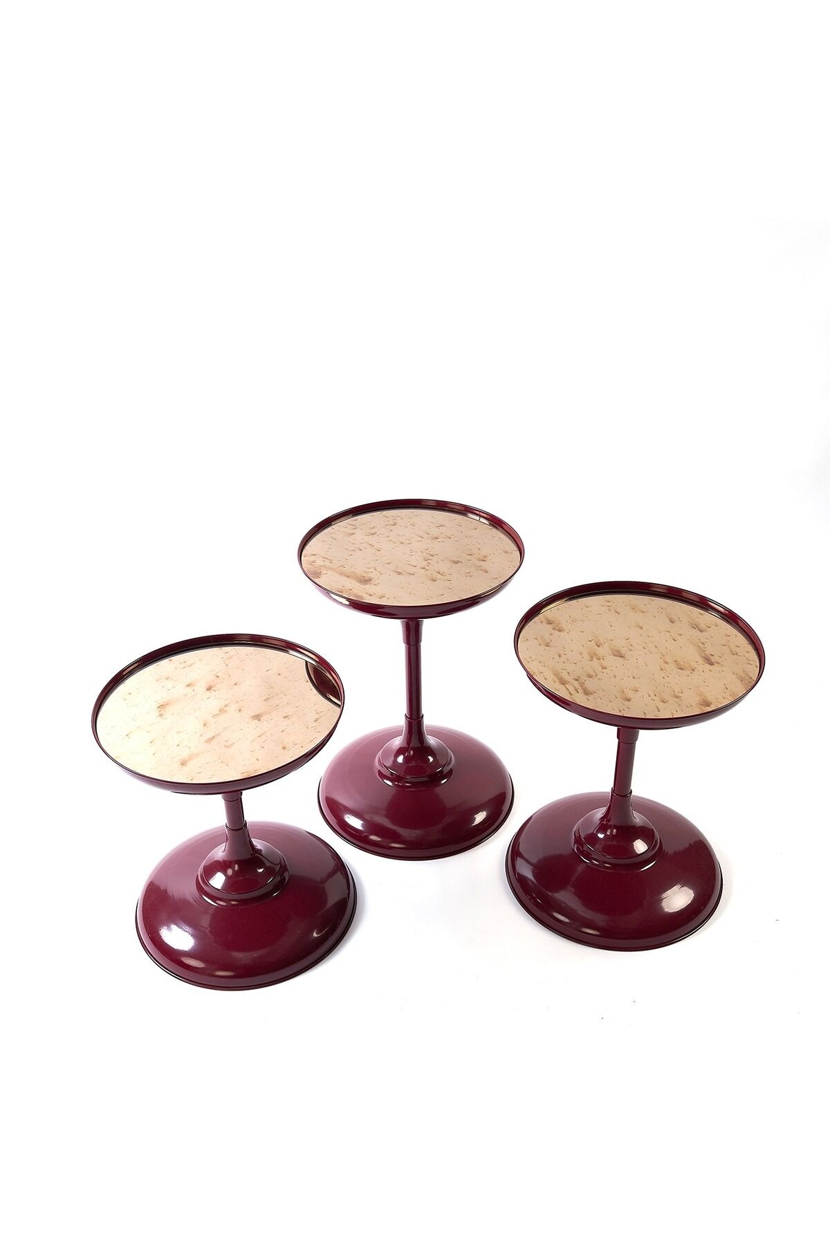 - Modern tasarımıyla oturma odanızın ve yatak odanızın atmosferini yenileyin.; - Yuvarlak formu sayesinde mekanınızda yumuşak ve akıcı bir geçiş sağlar.; - Tek ebat seçeneği ile farklı alanlarda kolayca uyum sağlar ve pratik kullanım sunar.; - Türkiye'de üretilmiş olup, yerel üretimle desteklenmiş kaliteli bir üründür.; - Metal materyali sayesinde dayanıklılık ve uzun ömürlü kullanım vaat eder.; - 1 yıl garantisi ile satın alma sonrasında da güvenle kullanabilirsiniz.; Ürün Detayları - Elektrostatik Fırın Boya ile renklendirilir - Üst Yüzeyi Bronz Aynadır - Yükseklikleri 43,48,54cm dir